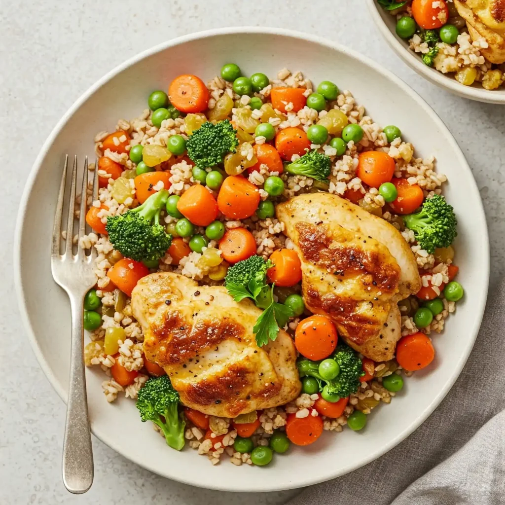 8. Egg and Veggie Fried Rice: Brown rice stir-fried with scrambled eggs, frozen peas, and carrots. Balanced and easy to prepare.